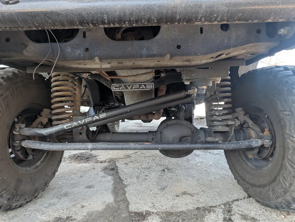 The CavFab XJ shackle relocation brackets are designed to replace your thin factory sheet metal shackle mounts with a completely re-engineered heavy-duty mount with multiple shackle locations to improve your shackle angle while keeping your lift height as close to current as possible.